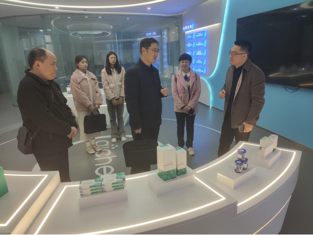 康磊一行在博岳集团产品展厅,详细了解了博岳集团的产品类型、产业布局、研发专利、园区规模等多方面情况。双方就校企平台合作、科技成果转化、毕业生就业基地建设等方面进行了深入交流。