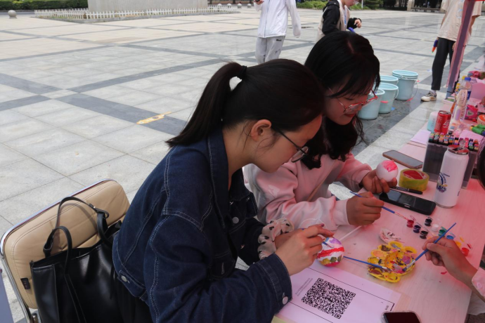 本次活动分为“忆童年”和“绘未来”两个部分。第一部分共设有六个游戏项目,“跳皮筋”通过边唱边跳的形式,锻炼了同学们的平衡能力及节奏感,增强了同学之间的默契度;“洒水枪大战”以小组对抗的形式展开,让同学们明白了团队协作的重要性,拉近了同学们之间的距离,增进大家之间的友谊;“丢手绢”“老鹰捉小鸡”以及“丢沙包”考验了大家的反应能力,锻炼了大家的专注力,使大家放松身心;“跳格子”通过接力累计得分的形式展开,提升了同学们的团队凝聚力,锻炼了同学们对身体的控制力。在“绘未来”部分,同学们在换取的气球、团扇或者泡沫小球上进行彩绘,大家发挥想象力,用画笔绘出自己内心的未来世界。前来参加的同学们络绎不绝,大家兴高采烈、精力充沛,现场洋溢着欢声笑语,气氛十分热烈。