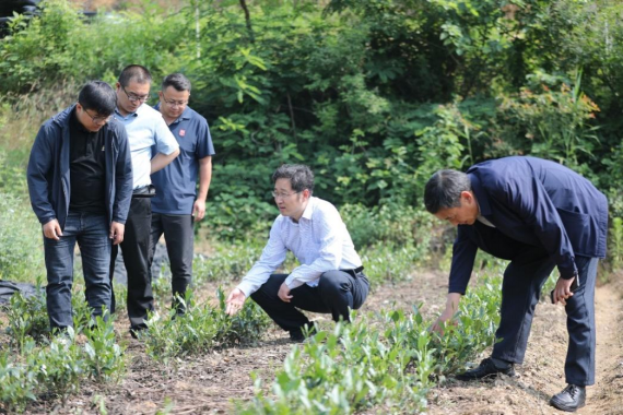 在南阳和佳农林科技有限公司总经理刘可佳带领下,康磊、罗建成在生态茶培育研究基地进行了实地考察、听取介绍,全面了解桐柏红茶生态种植情况。