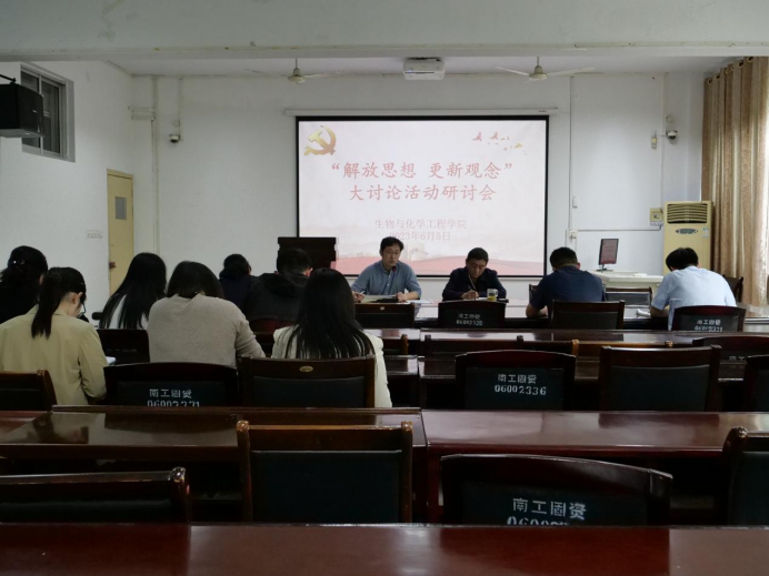 本网讯(学生通讯员/戴元启)6月5日,生化学院于9225会议室召开“解放思想 更新观念”大讨论活动研讨会,生化学院领导班子成员及全体科级干部参加本次会议。会议由党委书记康磊主持。