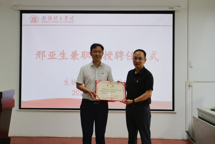 会上,生化学院党委书记康磊向邢亚生院长颁发兼职教授聘书。