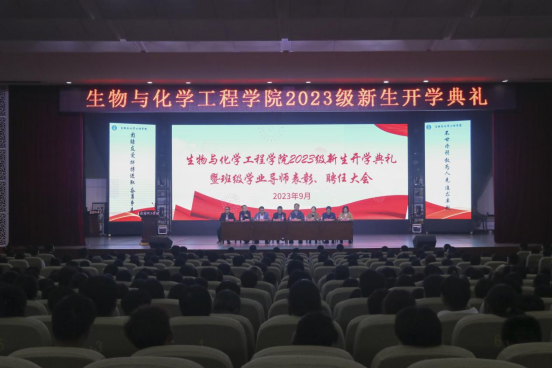 本网讯(特约记者/路守通 学生通讯员/卢苏晴 袁锦池)9月25日,生物与化学工程学院于毕业大厅举办2023级新生开学典礼暨班级学业导师表彰、聘任大会。学院领导班子、各年级班级学业导师和辅导员、全体新生参加本次会议。