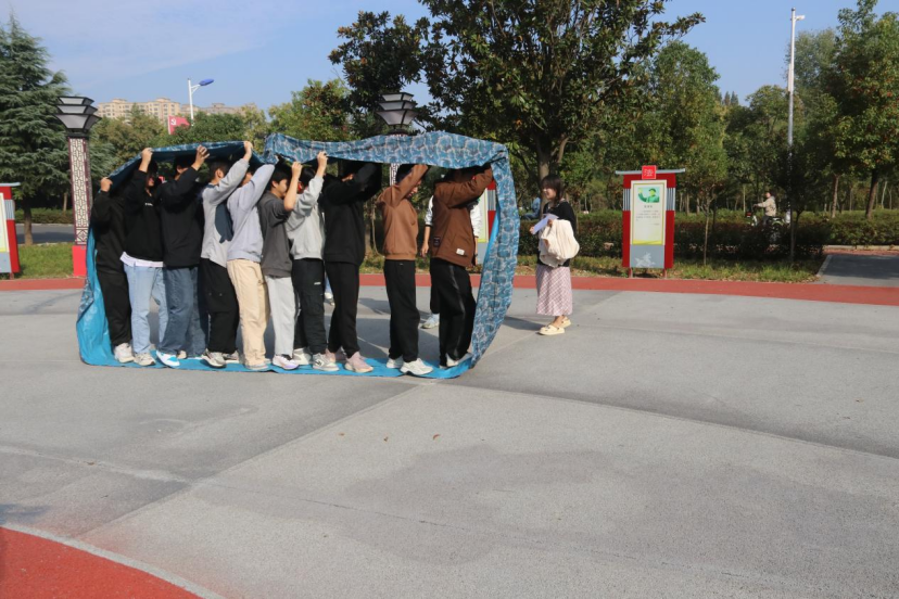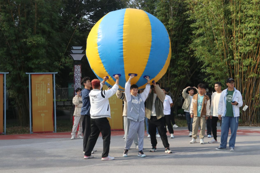 本次活动共设有四个游戏环节,经主持人介绍完规则后,以班级为单位展开。本次活动分为“扭转乾坤”“穿针引线”“同舟共济”“无敌风火轮”四个游戏项目。这些游戏环节集活动性、体验性、趣味性于一体,同学们精神抖擞,活力十足,积极参与到各个游戏环节当中,玩得不亦乐乎,现场充满了欢声笑语,氛围十分热烈。