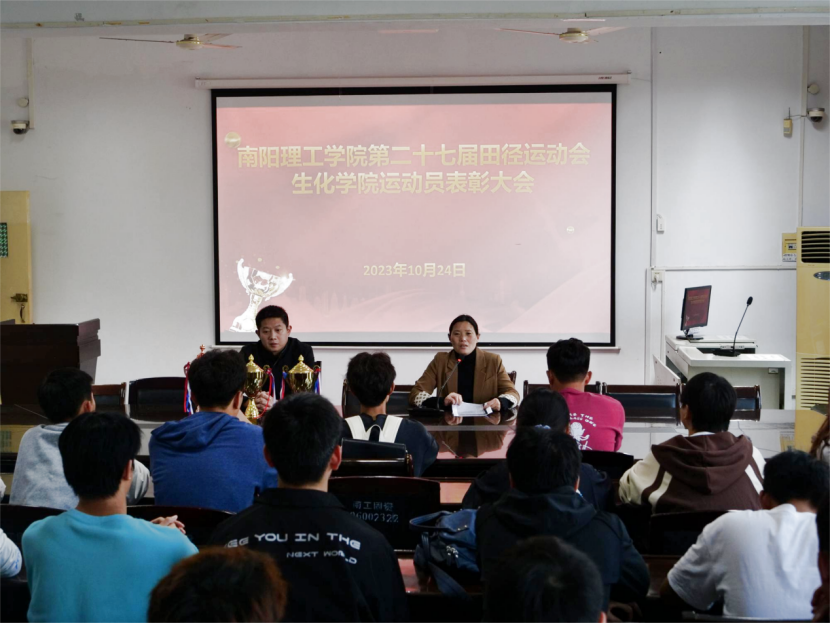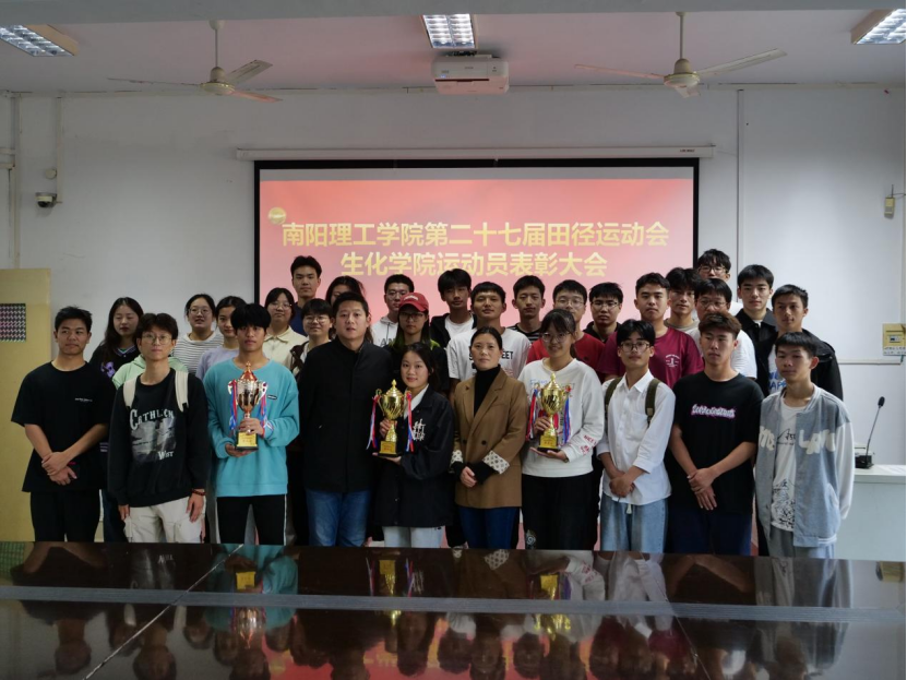 本网讯(学生通讯员/雍衡 曹硕)10月24日,生化学院于9225会议室举办南阳理工学院第27届田径运动会生化学院运动员表彰大会,学院党委副书记刘玉洁、团学办主任尹卓然出席,运动会获奖同学参与本次表彰大会。