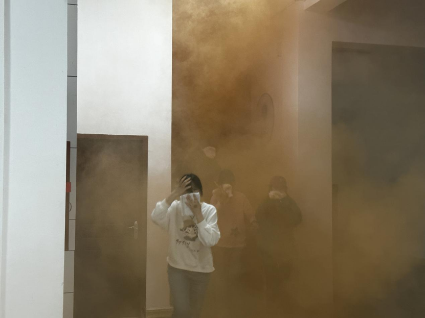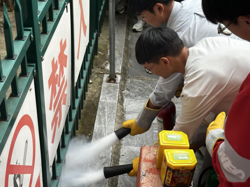师生于2号教学楼进行了消防演练。尖锐的警报声突然响起,教学楼中浓烟迅速扩散开来,同学们在老师的指挥下,用毛巾捂住口鼻,从教学楼内迅速有序的疏散到楼下安全地带。演练结束后,宋老师现场讲解了干粉灭火器的使用方法和注意事项后,同学们纷纷上前进行实际操作。消防演习是为了增强人们的安全防火意识的活动,让同学们进一步了解掌握火灾的处理流程,以及提升在处理突发事件过程中的协调配合能力。增强人员在火灾中互救、自救意识,明确防火负责人及义务消防队员在火灾中应尽的职责。