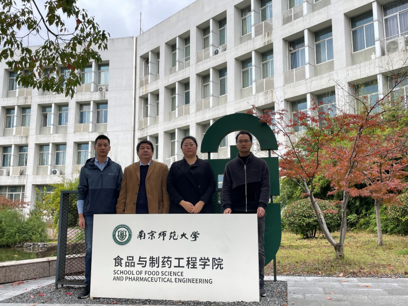 随后,郭书贤一行受邀来到南京师范大学食品与制药工程学院参观学习,南京师范大学郭东升副教授介绍了学院的发展历程、学科建设、科研团队等情况。参观结束后,双方就科研合作进行了深入交流,在合成生物学领域开展合作方面达成了初步共识。