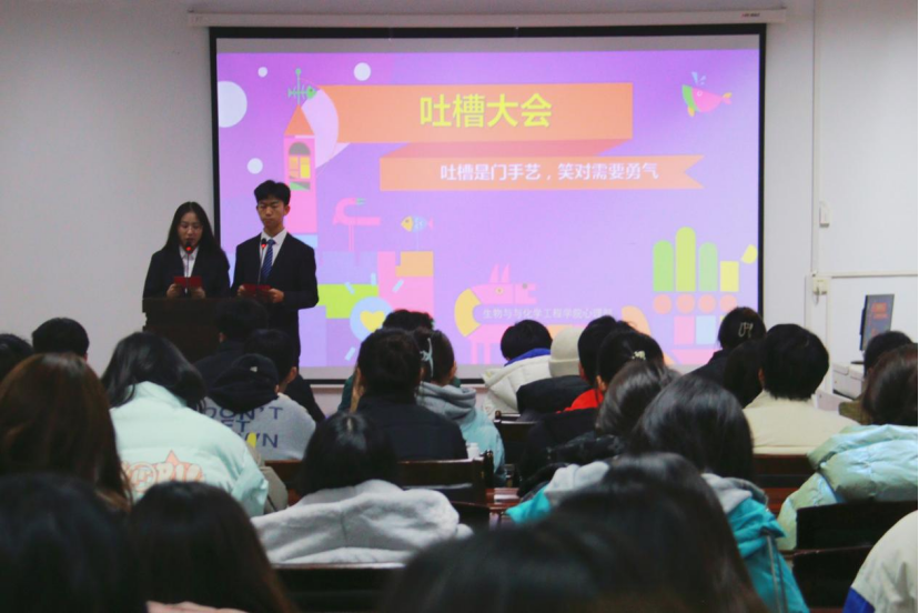 本网讯(学生通讯员/曹海贝 金邹钰 邵远恩)为引导同学们合理宣泄情绪,客观看待事物,11月16日,生化学院于9225会议室举办“吐槽大会”。学生会主席团担任评委,部分同学参加。