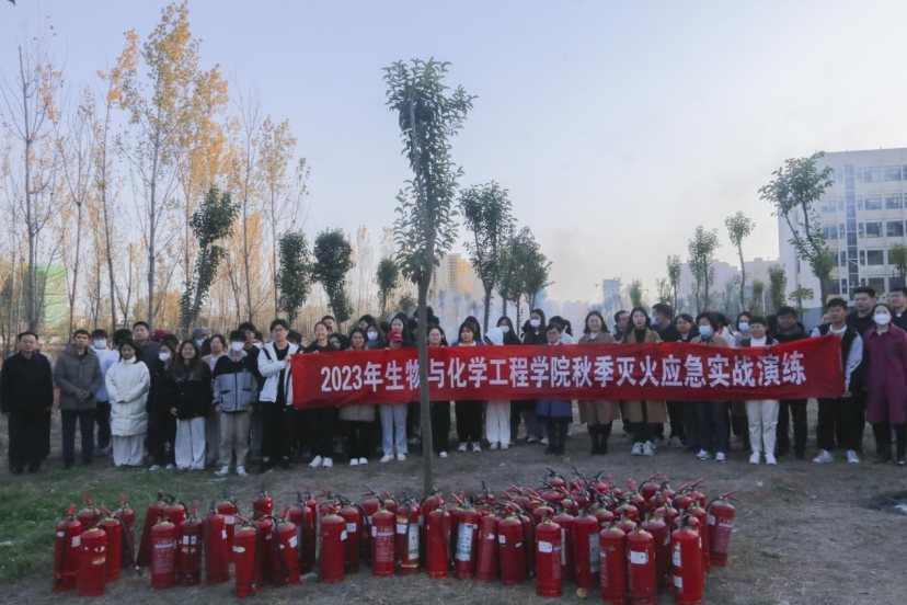 本网讯(学生通讯员/刘宸昕 魏文豪)为提高学生在火灾中的应急处理能力,11月23日,生化学院于20号教学楼东侧开展秋季灭火应急实战演练,生化学院副院长刘学国及部分教师代表出席本次活动,部分学生参加。