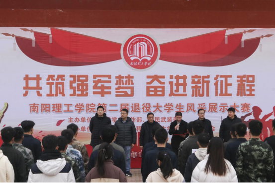 本网讯(特约记者/路守通 学生通讯员/曹海贝 金邹钰)11月28日,由党委学生工作部、人民武装部主办,生物与化学工程学院、大学生退役军人协会承办的“共筑强军梦,奋进新征程”第二届退役大学生风采展示大赛在我校西北校区田径场成功举办。党委学生工作部、人民武装部部长路瑞峰,生物与化学工程学院院长罗建成及相关老师出席大赛开幕式,我校部分在校退役大学生参加本次比赛。