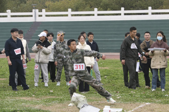 本次比赛共有“30x2蛇形跑”“手榴弹投远”“组合接力”三个项目,分为团体赛和个人赛。在比赛中,选手们团结奋进,顽强拼搏,充分展现了退役军人奋勇当先、永不言败的精神品质。最终,计算机与软件学院、智能制造学院和土木工程学院分别获得团体赛冠、亚、季军;王云飞、李明明、曹昱隆、孙春彪、胡金龙、黄丹丰同学包揽了折返跑前六名;李明明、黄丹丰、张英硕、王浩天、牛红彬、王云飞同学取得了手榴弹投远前六名。