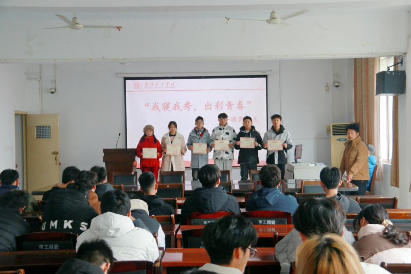 此次活动围绕“我寝我秀 出彩青春”主题进行logo设计、海报设计和文化建设照片开展。本次比赛中共有九个宿舍获奖,获奖选手们设计的logo别出心裁,美观大方;设计的海报涉及宿舍文化、宿舍节能环保、宿舍学习氛围等内容。此外,宿舍创意照的制作有利于增进舍友间感情,提升宿舍成员团队协作能力。最终,赵腾飞、丁旭平对一等奖获奖宿舍21#326,二等奖获奖宿舍9#201、9#406和三等奖获奖宿舍21#312、14#520、21#627依次颁发荣誉证书和奖品,并合影留念。