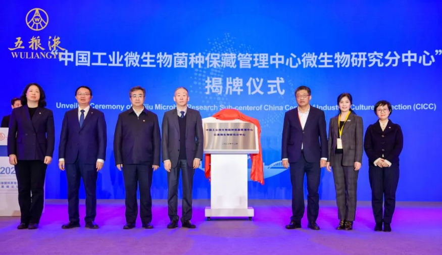 论坛上,举行了“中国工业微生物菌种保藏管理中心白酒微生物研究分中心”揭牌仪式,中国食品发酵工业研究院党委书记、总经理肖丹与宜宾五粮液股份有限公司总工程师、食品安全总监杨韵霞共同揭牌,安胜杰董事长、宋书玉理事长、张松梅副主任、曾从钦董事长、陈卫院士共同见证。“中国工业微生物菌种保藏管理中心白酒微生物研究分中心”是按照国家标准菌种资源库组建的白酒行业最大的菌种保藏平台,该平台现已收藏五粮液酿造微生物菌种400余种、1000余株、20000余份备份,为五粮液乃至中国白酒的技术创新及生产应用提供全面的菌种资源。