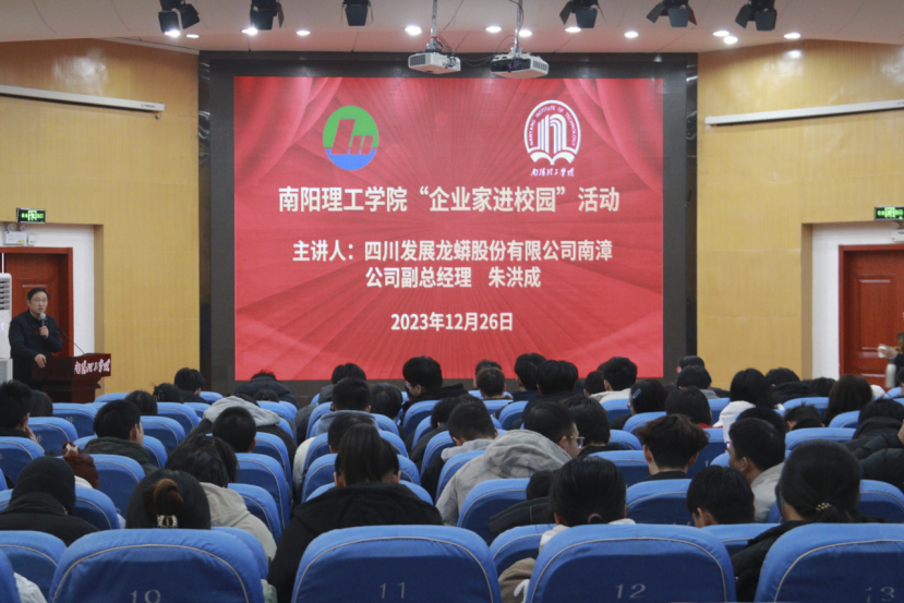 本网讯(学生通讯员/周祉婧)12月26日,生化学院于第二报告厅举办“企业家进校园”主题活动,南漳龙蟒磷制品有限责任公司副总经理朱洪成等一行5人出席,生物与化学工程学院党委书记康磊、创新创业就业指导中心副主任张梦主持此次会议,学院相关专业学生参加。