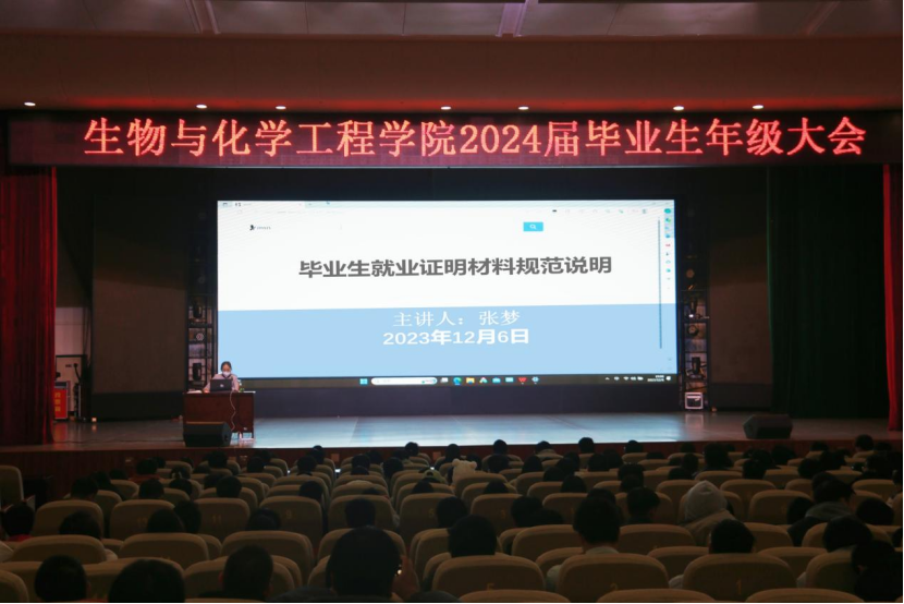 本网讯(学生通讯员/卢苏晴 张虔焜)12月6日,生化学院于毕业大厅开展2024届毕业生年级大会。学院党委副书记刘玉洁、副院长李慧星、创新创业就业指导中心副主任张梦出席,全体2024届毕业生参加本次大会。
