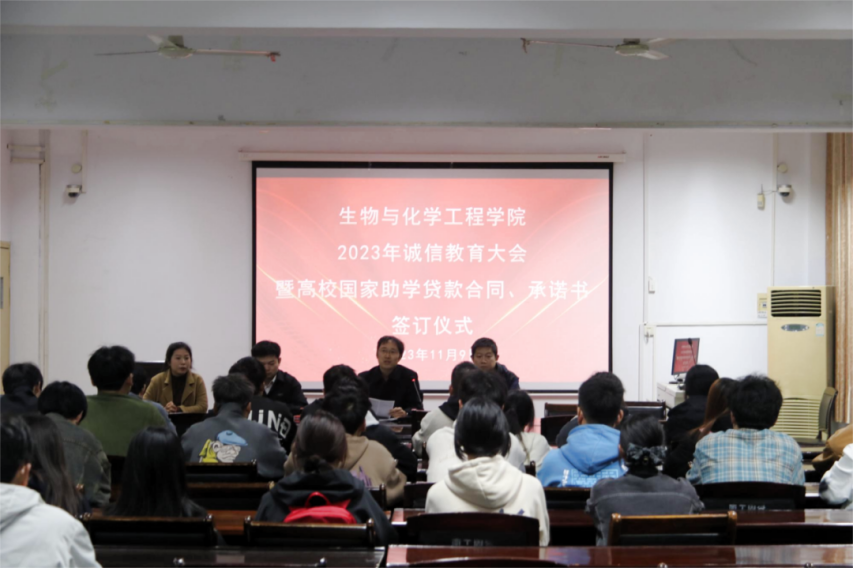 本网讯(学生通讯员/王鸿焜 卢苏晴 杨豆豆)为进一步强化我院助学贷款学生的诚信教育,完善助学贷款各项工作流程,11月9日,生化学院于9225会议室开展2023年诚信教育大会暨高校国家助学贷款合同、承诺书签字仪式活动。学院党委书记康磊、资助专干老师李玉玺、团学办老师及本年度贷款学生参加本次签字仪式。