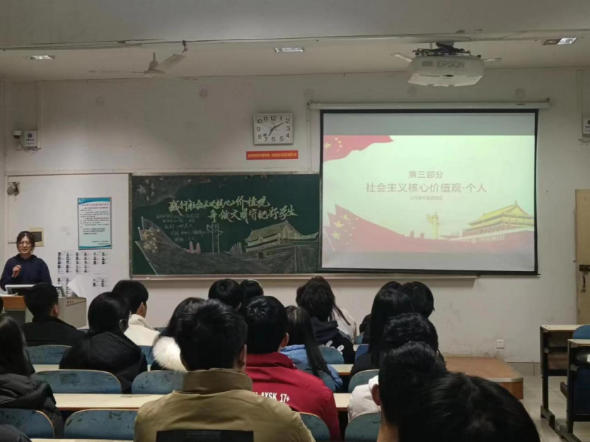 本次班会以观看视频、主讲人讲解PPT、学生互动讨论的形式展开。各班主讲人结合近年典型案例,进行了全面深入的分析,讲解了社会主义核心价值观在日常生活中的重要作用,引导同学们积极主动践行社会主义核心价值观,争做文明守纪的好学生。在互动讨论中,同学们积极踊跃发言,探讨自己对于社会主义核心价值观了解的深度和广度,并表示在今后生活中将社会主义核心价值观内化于心、外化于行。