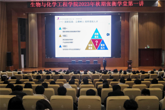 本网讯(特约记者/路守通 学生通讯员/曹海贝 高原)2024年1月3日,生物与化学工程学院于第三学术报告厅举办张衡学堂第一讲,邀请我校招生就业处郭勇老师做《“双创”出彩,筑梦未来》主题讲座,22级、23级部分学生参加。