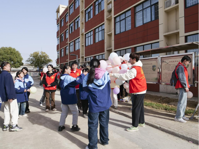 本网讯(学生通讯员/曹海贝 石俊超)为了深入开展学雷锋主题教育活动,大力弘扬“奉献、友爱、互助、进步”的志愿服务精神,3月28日,生化学院资助工作站在老师的带领下,志愿者们前往南阳市特殊教育学校开展学雷锋教育活动。