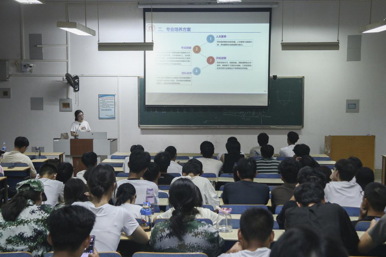 应用化学、化学工程与工艺以及生物工程专业教研室主任叶红勇、谢英男、于海彦及应用化学中外专业负责老师郭萌、生物工程中外专业负责老师潘会严分别根据专业教学方向以及专业特色的不同,对本专业做出详细的介绍,具体讲解了本专业的基础课程、教学特色、历史背景、培养目标、就业方向、学分设置、专业人才培养方案、教学资源、专业应用范围等基本情况,同时结合当前形势分析了专业的就业前景和发展方向,深入介绍了本专业在生活中的实际应用范围、专业覆盖程度及学术研究方向等内容,让同学们明白了各专业的特色以及相互之间的差异与联系。老师们还以往届学生的经历鼓励新生,告诉他们要在学期开始之际明确学习目标,规划好大学生活,为个人长远发展打下坚实基础。