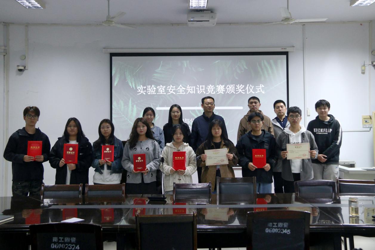 本网讯(学生通讯员/苏卓然 单静轩)为了切实帮助学生增强实验室安全意识,提升应对突发状况的能力,11月4日,我院于9225会议室举办实验室安全知识竞赛颁奖仪式。副院长刘学国以及部分老师共同为竞赛获奖学生颁奖。