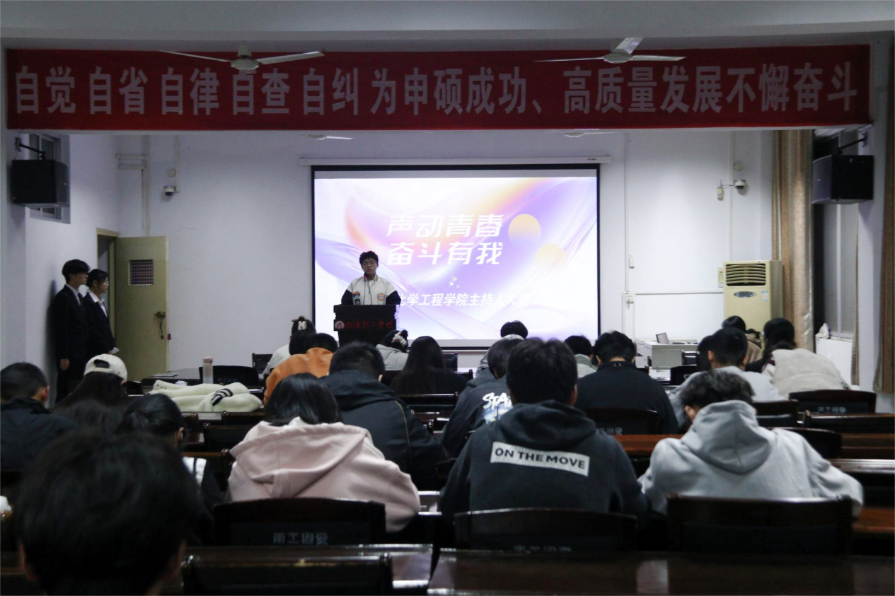 本网讯(学生通讯员/苏卓然 赵广辉 张阳森)11月9日,生化学院于9225会议室举办“声动青春,奋斗有我”主持人大赛。生化学院团学办主任张梦和部分学生会主席团成员担任评委,各年级同学观看。