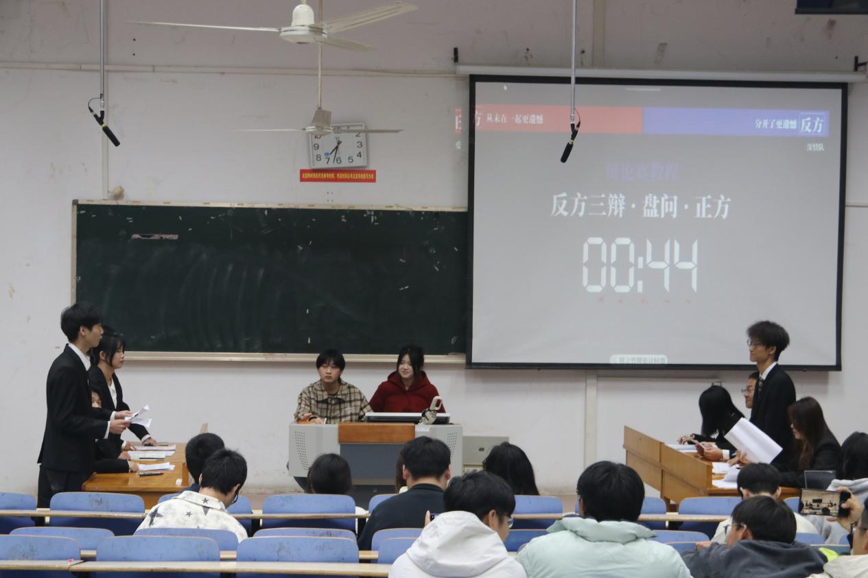 本次辩论赛的圆满举行,不仅锤炼了参赛同学的辩论技艺,还增强了团队协作精神,有效提升了学生的逻辑思维能力与语言表达能力。(摄影/学生通讯员 胡煌烨 何昊庭)