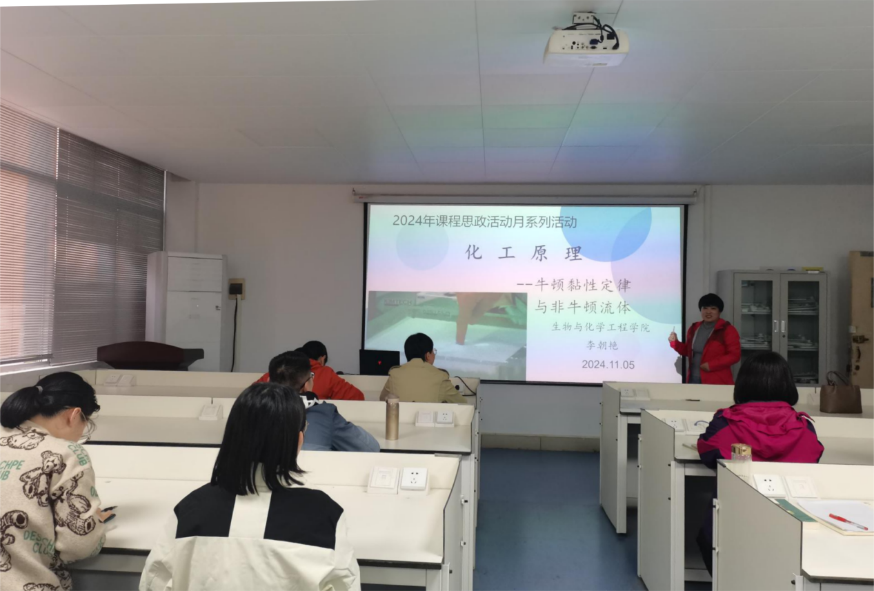 李朝艳就《化工原理》课程的“牛顿粘性定律与非牛顿流体”的章节上了一堂精彩的公开课。上课伊始,教师用大自然中流体流动的美丽景色结合中国古代诗词中“浮云终日行”“飞流直下三千尺”描述气体和液体的流动之美。接下来,师生展开关于流体粘性问题的讨论,分析流体剪应力和速度梯度之间的关系,又结合常见的牛顿型流体和非牛顿型流体在生产、生活、现代军事等方面的应用,鼓励学生努力学习、认真钻研,争取为国家的科技创新和社会发展作出贡献。