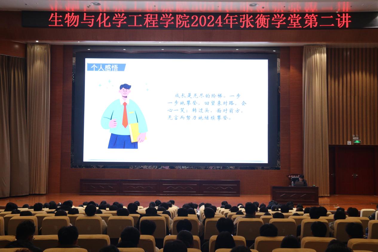 本网讯(学生通讯员/苏卓然 郎梓涵 张阳森)12月5日,生物与化学工程学院于第三报告厅举办张衡学堂第二讲,团学办主任张梦出席,24级全体学生参加。