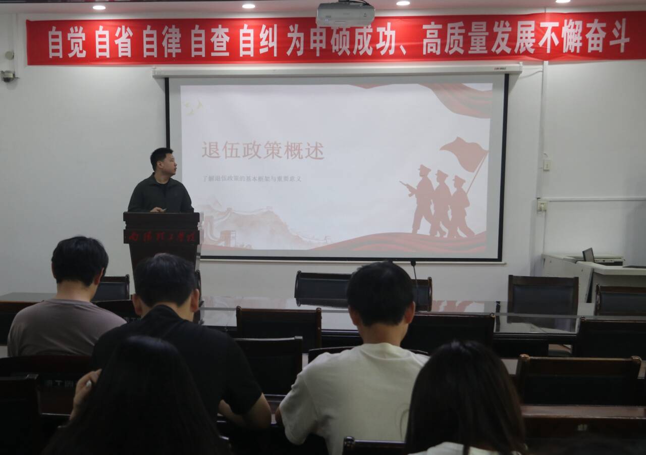 宣讲过程中,学生代表吴正宇从政策概述、安置、就业、培训、常见问题解答五大板块展开讲述。在政策概述环节,他指出退伍政策是国家为退役军人构建的安置、就业、培训等保障体系,旨在保障权益、促进社会和谐,适用于各类退役人员,且政策正从基础安置向就业创业扶持深化。安置政策讲解中,他详解自主择业、计划分配、复员三种方式,强调住房、医疗、生活补贴等配套保障,就业政策聚焦职业培训、岗位推荐、创业扶持,提及税收减免、创业贷款等优惠以及培训政策涵盖技能、学历、职业素养培训,支持线上线下多渠道报名,培训周期灵活可调。他针对常见问题,明确官网查询、热线咨询、现场办理等政策咨询渠道,同时梳理材料准备清单、申请时间节点等实操要点,为退役军人提供全流程指引,助力政策落地见效。