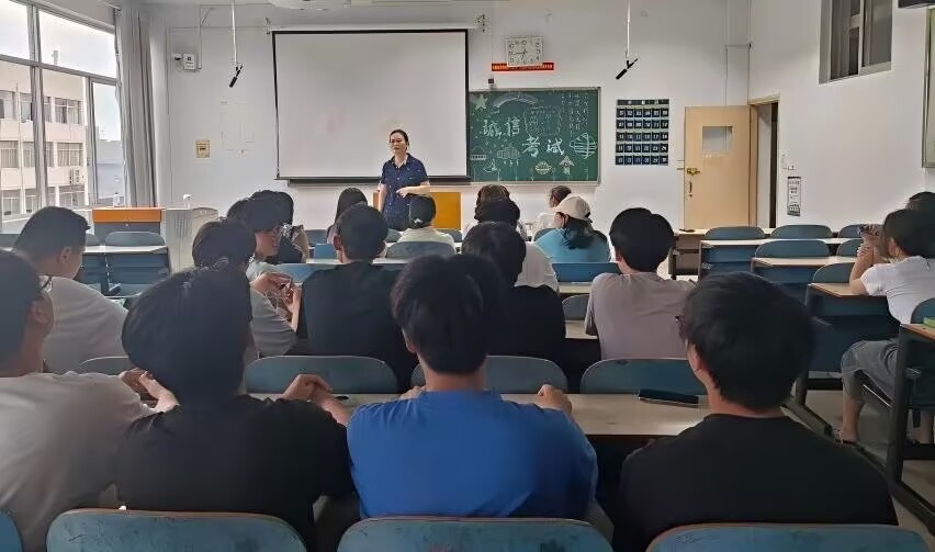 各班学业导师和辅导员以往考试作弊案例为切入点,召开“考风考纪教育”主题班会。老师们以此类实例强调“诚信是学业与人生的基石”,引导学生从思想根源认识到作弊行为的危害性,树立“诚信应考光荣,违纪作弊可耻”的观念。生化学院同时推行“桌签行动”,聚焦学生干部与学生党员群体,通过在考桌上放置标注身份的桌签,将身份标识与诚信考试责任绑定,形成“亮身份、树标杆、严自律”的示范机制。在考场中严于律己,以身作则,杜绝违纪作弊,诠释新时代青年的责任与担当,以身份公示强化自我约束与榜样引领。