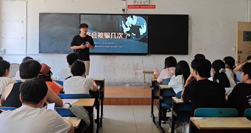 本网讯(学生通讯员/苏卓然 李屹豪)为增强大学生防诈骗意识,提高自我保护能力,近期,生化学院防诈普法宣讲团进班宣讲,全体学生参加。