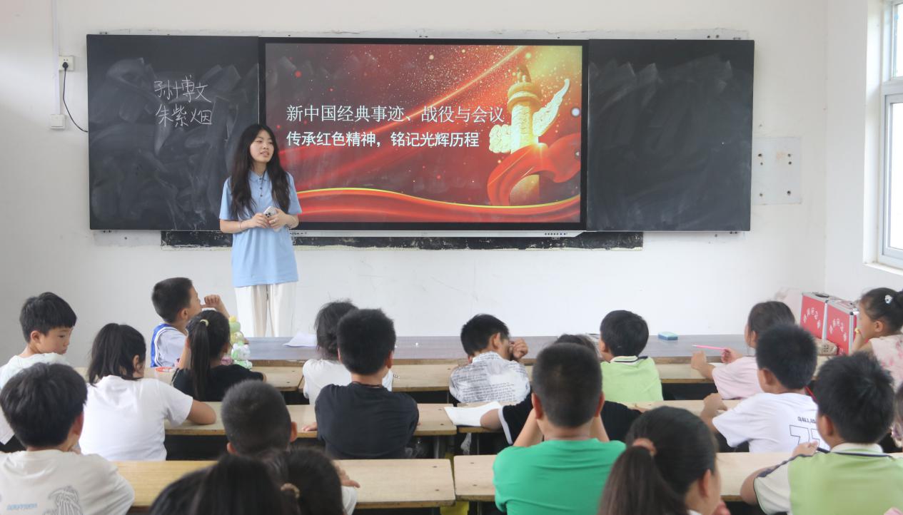 竹园村小学优秀学生代表翟欣怡向支教队致以崇高敬意与感谢,她表示会珍视机会,以支教队为榜样,立志成才回馈善意。生物与化学工程学院支教队队长孙博文表示,希望在支教期间能与孩子们亦师亦友,用知识传递希望,以陪伴守护他们成长。