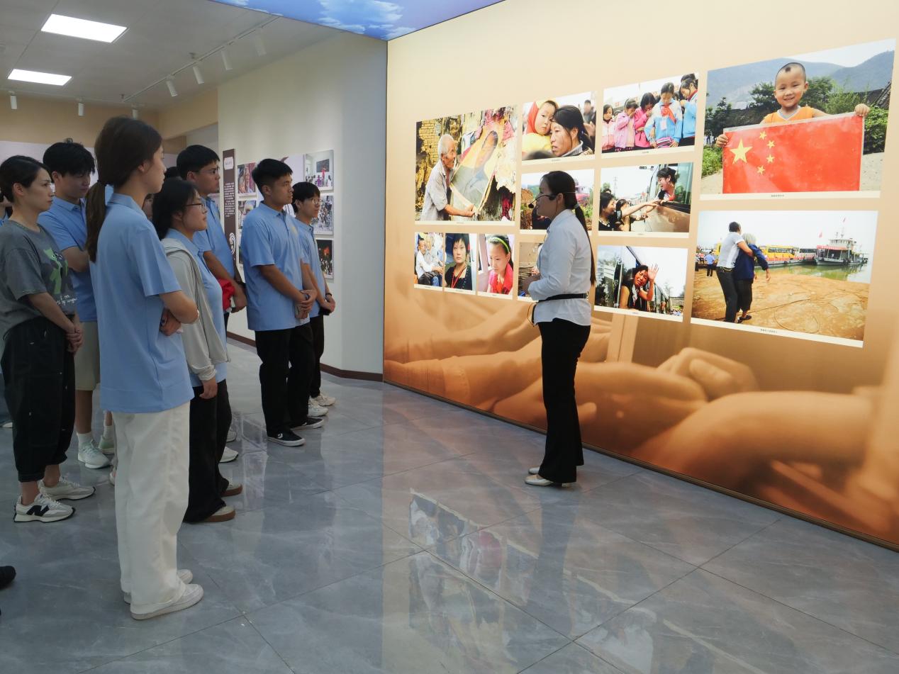 7月3日,实践团队来到南水北调淅川移民展览馆。展馆里泛黄的移民照片、锈迹斑斑的搬迁工具与移民路线图,让队员们切身感受到当时移民搬迁的不易,讲解员以“国家行动·淅川担当”为脉络,讲述了淅川百万移民为保障南水北调中线工程顺利推进,先后两次大规模搬迁的艰苦历程。队员们认真聆听,更深刻学习了南水北调工程的意义与“舍小家为大家”的移民精神。