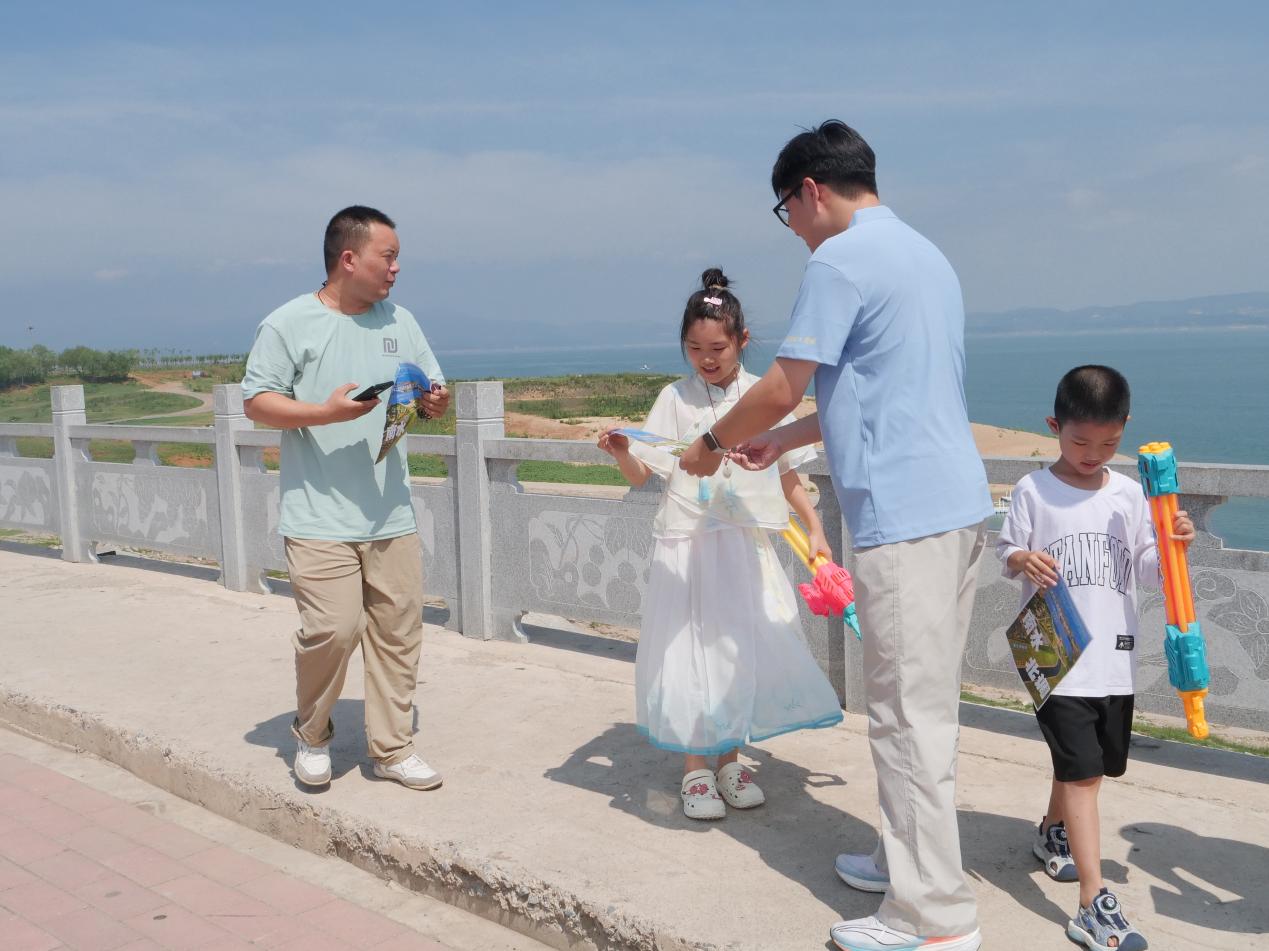 离开了邹庄移民新村,实践团队来到宋岗旅游港发放南水北调工程宣传单,以实际行动传播国家战略工程的重要意义。队员们身穿统一队服,向过往游客、渔民及周边居民发放精心设计的宣传单。双页图文并茂,介绍了南水北调工程“东、中、西”三线布局、建设历程、惠及人口,并呼吁大家用实际行动守护南水北调水源。队员们还设计了有关南水北调工程和移民精神的易拉宝,他们结合易拉宝内容,讲述了丹江口库区群众两次搬迁、三代守护水源的感人事迹以及移民精神,吸引了不少游客驻足。