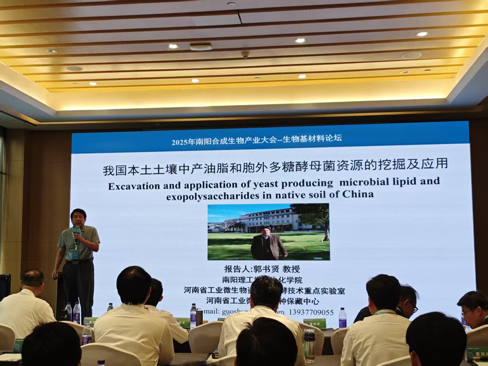 报告会上,各位专家围绕“生物智造·豫见未来”大会主题,纷纷作了精彩报告,深入剖析合成生物领域前沿成果与发展趋势,为南阳合成生物产业发展建言献策、注入强劲动力。工业微生物资源发掘与利用团队郭书贤教授应邀在“生物基材料分论坛”作《我国本土土壤中产油脂和胞外多糖酵母菌资源的发掘与应用》的学术报告,展示了本团队在产油脂酵母菌资源领域开展的工作,获得了参会嘉宾的高度肯定和关注。