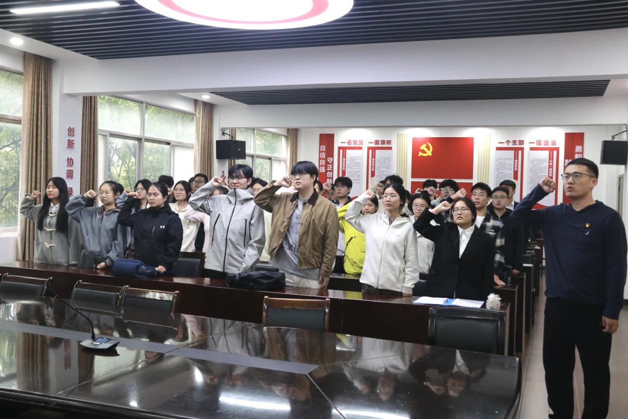 大会在庄严肃穆的国歌声中拉开帷幕。张梦宣读预备党员名单,乔沛带领全体预备党员进行宣誓。杨烁蒙作为预备党员代表发言,她分享了培养考察期间在思想淬炼、责任认同和行动规划上的深入思考,并表示将以党员标准严格要求自己,主动担当、积极作为,在实践中不断提升党性修养。张一豪同志作为入党积极分子代表发言,他汇报了自己在思想、学习、工作等方面的进步和不足,并表达了持续向优秀党员看齐、争取早日加入党组织的坚定决心。