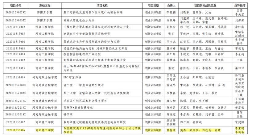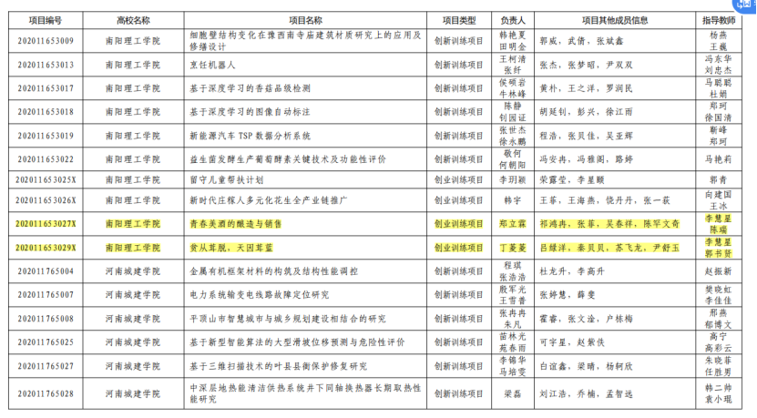 本网讯(学生通讯员/孙唯玉)近期,我院七个项目成功入选2020年河南省大学生创新创业训练计划项目,其中四项入选省级项目,三项入选国家级项目。