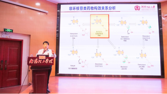 会上,郭海明教授介绍了近年来在嘌呤碱基的选择性结构修饰及构筑、杂环及非环核苷的设计合成、新型核苷类化合物库的构建及活性研究、核苷药物的合成工艺研究等方面取得的丰硕成果,展望了核苷类药物在抗病毒、抗肿瘤领域的应用前景。