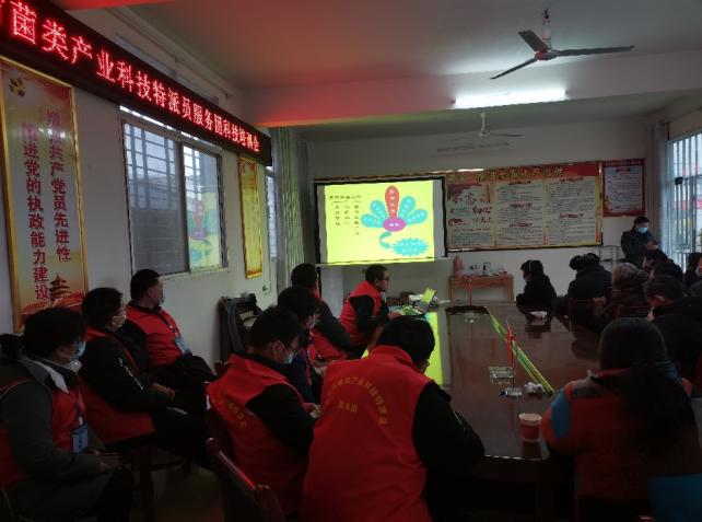 本网讯(特约记者/于海彦)近日,南阳市菌类产业科技特派员服务团一行10人(以下简称“服务团”)、南阳市科技局驻袁庄村工作队、丹水镇袁庄村村委会联合举办的“羊肚菌种植栽培管理技术”培训会在袁庄村委会议室举办。南阳市科学技术局驻村工作队华万胜、中原银行驻村工作队队长蔡长来,袁庄村村委委员刘长德出席了此次技术培训会,南阳市菌类产业科技特派员服务团成员、袁庄村羊肚菌种植合作社负责人、羊肚菌种植大户、袁庄村菇农等40余人参加了此次培训会。