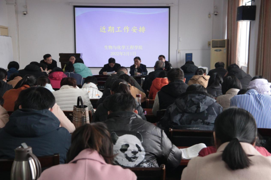 会议上全体教职工观看了南阳市“观念能力作风建设年”活动第二期作风问题暗访专题片,并学习了国内某高校老师违背师德师风反面典型事例,康磊指出,这些反面案例值得大家深入思考,并且学院也针对之前学生违规违纪情况进行了严肃处理,希望每位老师们能够以此次活动位抓手,敲响警钟,转观念、强作风。党委书记康磊,副院长李慧星、刘学国,河南省工业与微生物重点实验室副主任程爽分别就上一阶段学生工作、党建、教育教学、学科竞赛、实验室管理等方面进行了汇报,并就新学期的工作安排进行了详细部署。康磊强调,临近毕业季,毕业班学业导师和辅导员老师及时关注学生动态,帮助学生疏导就业压力,引导学生积极应对就业问题。