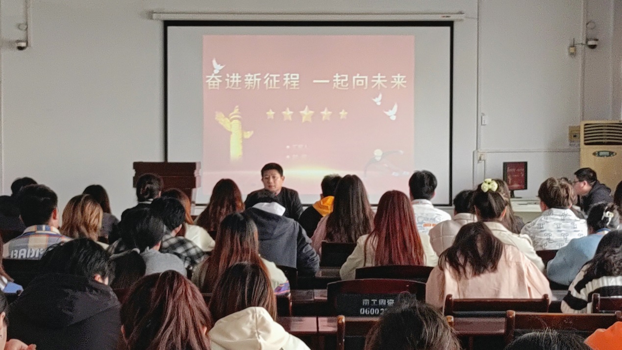 团学办公室主任尹卓然从“定向领航,成就冰雪梦想”、“拼搏奋斗,展现中国精神”、“伟大成就,凸显制度优势”、“天下一家,谱写奋斗华章”四个方面向大家展现冬奥精神。从“单刀赴会”的刘长春到洛杉矶奥运会的胜利再到北京冬奥会的惊艳世界,中国不断蓬勃发展,让“奥运三问”变成“双奥”之城。此次冬奥会我国奥运健儿更是凭借实力为中国勇夺9枚金牌、4枚银牌和2枚铜牌,每个夺冠的精彩瞬间都让同学们心潮澎湃、热血沸腾。他提到,无论是冬奥健儿每一枚金牌的背后都是他们日以继夜的付出与努力,他们的体育精神无不映照着民族精神。同学们应该以此为榜样,学习冬奥精神,勇担历史使命。