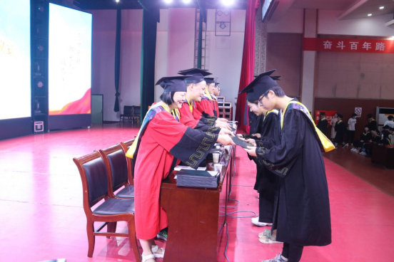 典礼上宣读了2022届毕业生考取研究生情况,并对省级、校级优秀毕业生进行表彰。(摄影/学生通讯员戴元启 谢菲)