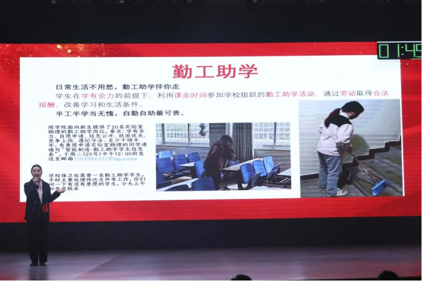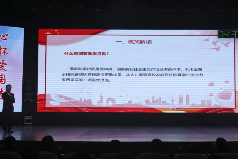 “助学贷款,成就梦想”李少倩从政策解读、发展历程、重要意义、征信管理、安全提示五个方面介绍了国家助学贷款。宣讲中,她重点介绍了高校国家助学贷款、生源地信用助学贷款的基本政策和重要意义。她说:“今日资贫助学伴我行,来日我必成荫报以诚”。