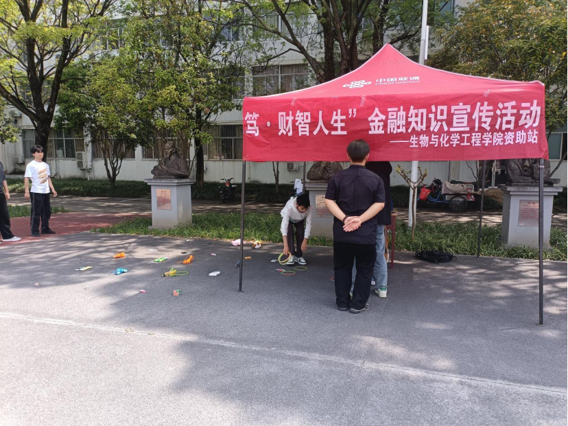本网讯(学生通讯员/曹海贝 杨豆豆)为更好地普及金融知识,4月14日,生化学院于齐贤广场举办“诚信,感恩,励志,责任”金融知识宣传活动,部分学生参加本次活动。