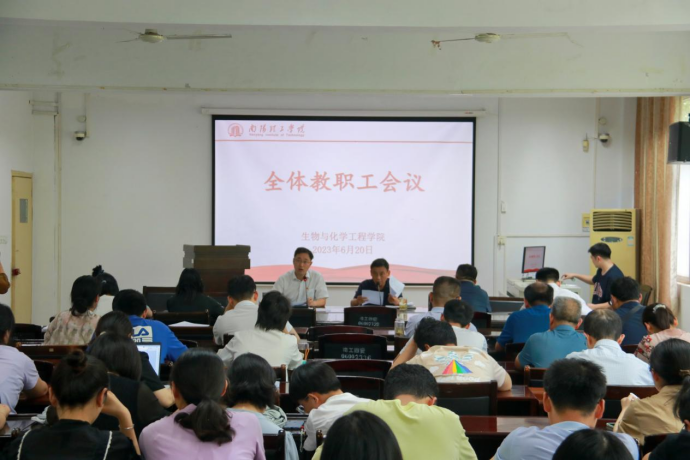 本网讯(学生通讯员/王娜 卢苏晴)6月20日,生化学院于9225会议室召开全体教职工会议,生化学院领导班子成员及全体教职工参加。