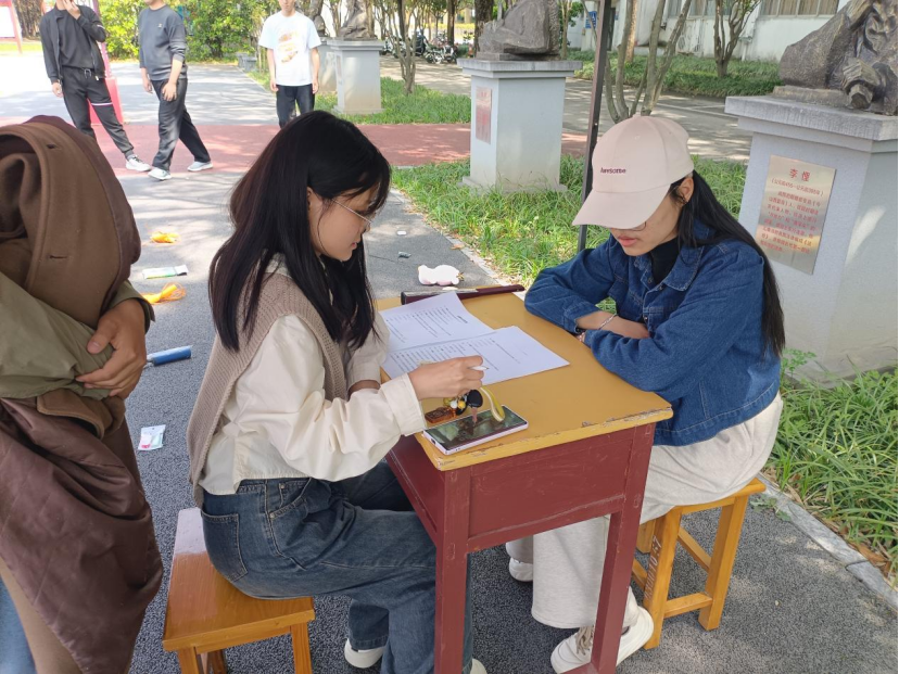 本次活动集知识性、趣味性、体验性为一体,通过现场答题和套圈的方式展开。在现场答题环节,采取线下纸质试卷答题,题目类型分为单选题和判断题,同学们灵活调动自身的知识储备积极思考、沉稳作答、精准破题。随后,同学们根据取得的分数获取相应的套环个数,进行套圈活动获得奖品。这些环节融合了各种金融知识,使同学们在活动提高了对金融知识的了解程度。现场人员络绎不绝,同学们积极讨论,分享自身对金融知识的了解,气氛热烈。