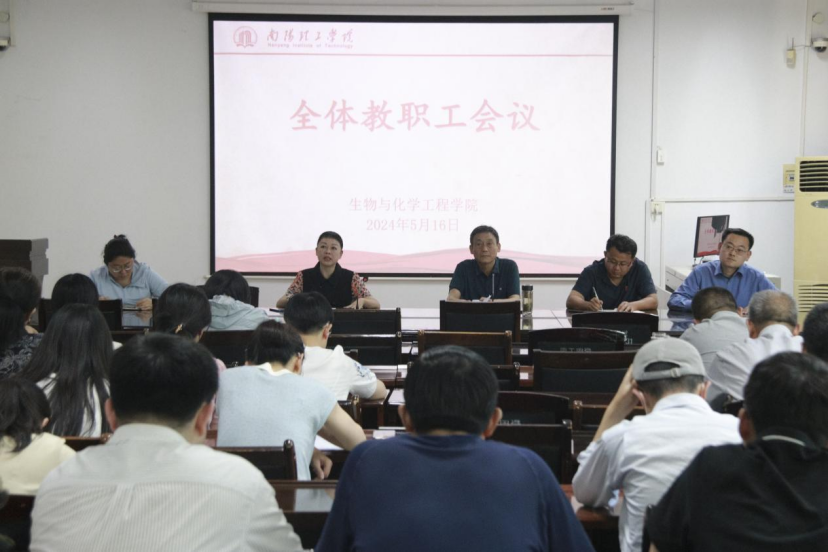 本网讯(学生通讯员/曹海贝 张晴 邵远恩)5月16日,生化学院于9225会议室召开全体教职工会议,此次会议由院长罗建成主持,生化学院领导班子成员和全体教职工参加。