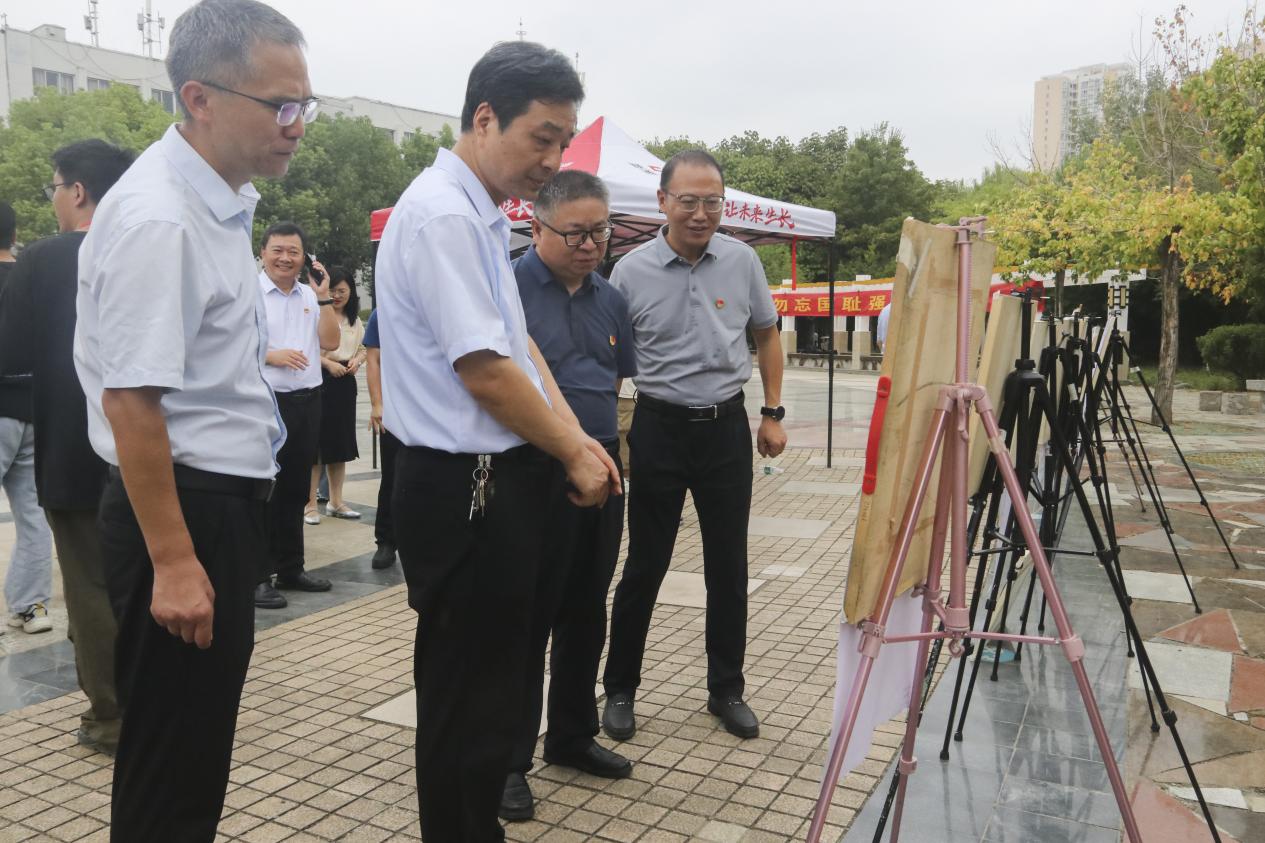 土木工程学院党委书记田进军致辞,他希望全体师生团结一心、严于律己、自觉地肩负起实现中华民族伟大复兴的历史重担,并带领全体师生在防空警报声中向牺牲的先烈和死难的同胞进行默哀。紧接着智能制造学院党委书记万战争带领全体师生宣誓,誓言在整个广场回荡。最后,活动结束后所有在场人员进行签名并参观由学生所绘制的主题手抄报。
