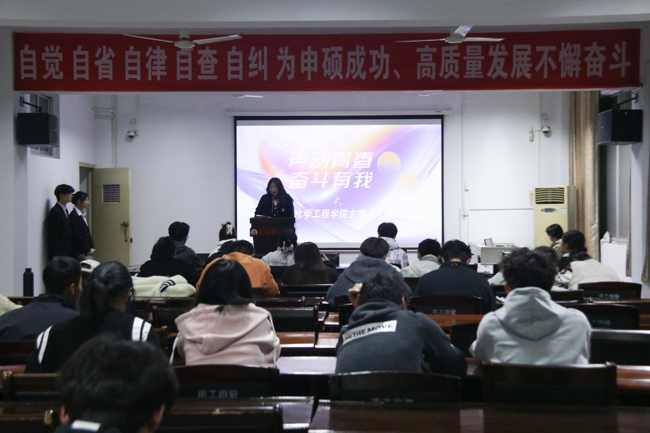 本网讯(学生通讯员/苏卓然 赵广辉 张阳森)11月9日,生化学院于9225会议室举办“声动青春,奋斗有我”主持人大赛。生化学院团学办主任张梦和部分学生会主席团成员担任评委,各年级同学观看。