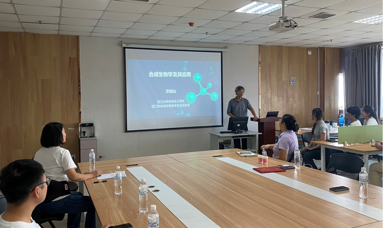 本网讯(特约记者/程爽)7月13日上午,我国合成生物学先驱者之一、厦门大学闽江学者特聘教授、厦门市合成生物技术重点实验室创始主任、牧原实验室产业顾问方柏山教授来校考察了河南省工业微生物资源与发酵技术重点实验室/河南省工业微生物菌种保藏工程研究中心,并为微生物资源发掘与利用团队师生做了一场精彩的《合成生物学及其应用》学术报告。方教授结合自身研究经历、国内外合成生物学发展历程、合成生物学及相关产业面临的机遇与挑战展开报告。报告结束后与师生开展了热烈交流,鼓励青年教师瞄准合成生物学及相关学科发展方向,踏踏实实做好科研工作;勉励同学们珍惜时光和在实验室进行科学研究的机会,积极参与各类学科竞赛,争取在更高层次的平台上继续深造,实现梦想。